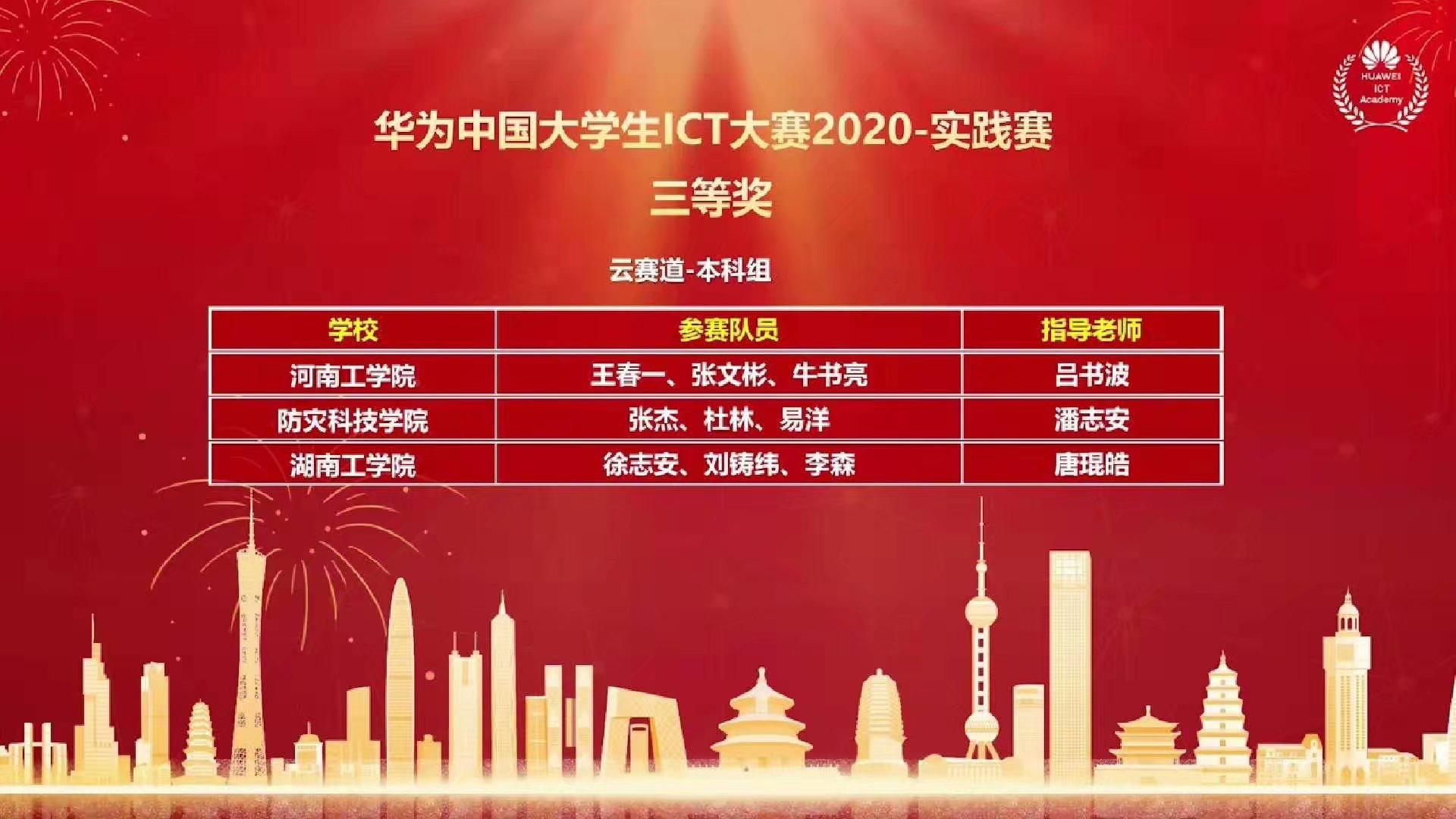 河南工学院代表队获得“华为中国大学生ICT大赛2020-实践赛”三等奖
