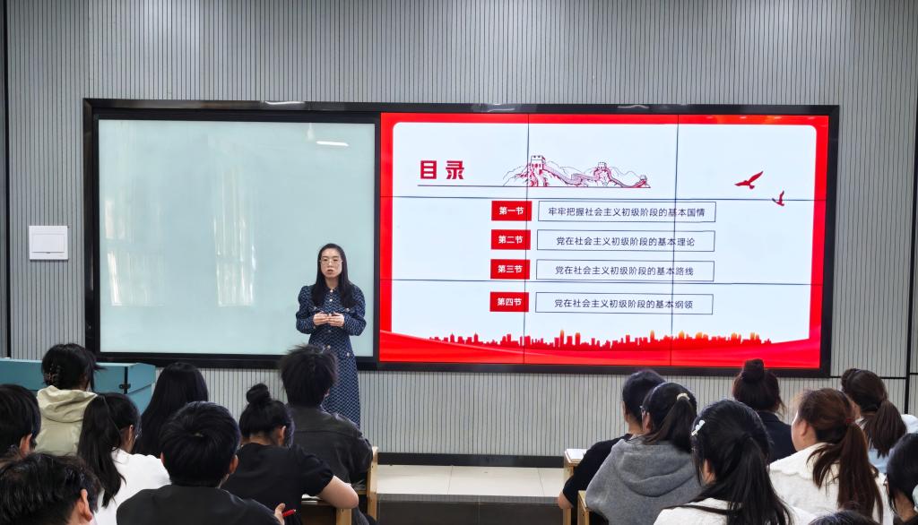 张老师以史鉴今,将党的理论知识与我国发展实际相结合,对我党成立以来的重大事件进行梳理,对当前时政热点进行分析,使同学们明晰了当代中国最大的实际是处于并将长期处于社会主义初级阶段;党在社会主义初级阶段的基本理论(即党的指导思想)是马克思列宁主义、毛泽东思想、邓小平理论、“三个代表”重要思想、科学发展观以及习近平新时代中国特色社会主义思想;党在社会主义初级阶段的基本路线的核心内容是“一个中心、两个基本点”;建设中国特色社会主义经济、政治、文化、社会、生态文明构成了党在社会主义初级阶段的基本纲领。