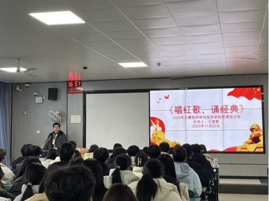 2025年10月20日下午,我院党委学生党支部于教一A303开展《唱红歌,诵经典》情景学习党课,由王波智老师主讲,2025年下半年全体入党积极分子参与其中。