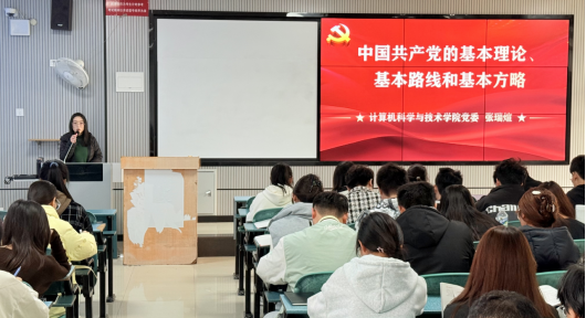 2025年11月15日上午8点,我院党委学生党支部于教学一号楼A303教室开展了以“中国共产党的基本理论、基本路线和基本方略”为主题的党课教育,本次党课由学生第二党支部书记张瑞煊讲授,2025年下半年入党积极分子参加。