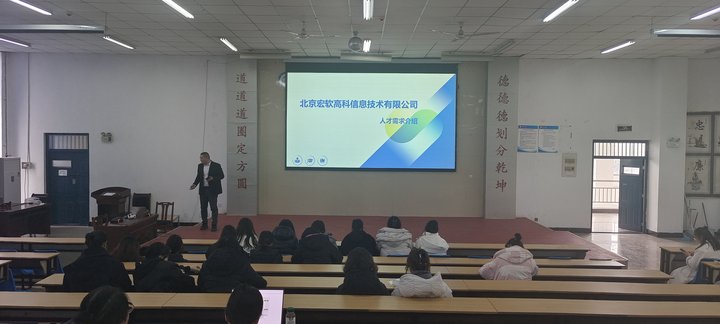 2024年12月25日,河南工学院计算机科学与技术学院于教一A205成功举办了“企业进校园·招聘面对面”2025届毕业生专场招聘会,邀请新乡北游科技有限公司、河南悦橙文化传媒有限公司、北京宏软高科信息技术有限公司、河南安冉云网络科技有限公司四家用人单位进校宣讲招聘,吸引了大批计算机及相关专业的优秀毕业生前来应聘。