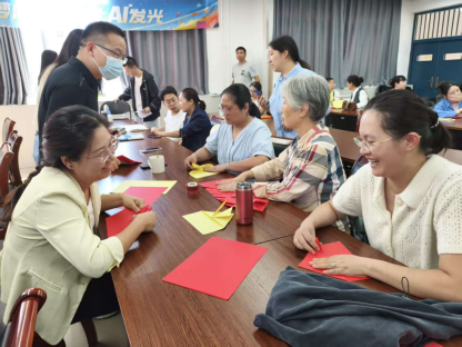 剪纸映初心,指尖传承文化魂。在活动现场,剪纸区域早早便围满了兴致勃勃的老师,桌子上整齐摆放着五颜六色的纸张、剪刀、胶水等材料和工具,半个小时后,剪纸作品陆续完成,老师们将剪好的作品进行展示,红色剪纸映着笑脸,成了现场最暖的双节印记。