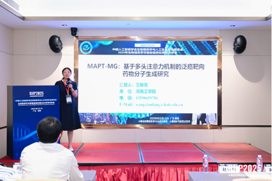 我院教师王鲜芳应邀做了题为“MAPT-MG:基于多头注意力机制的泛癌靶向药物分子生成”学术报告,分享了团队最新的科研成果,主要整合泛癌多组学数据,通过多头注意力特征融合引擎提取癌种特异性靶标特征,结合条件化分子生成器实现癌种自适应分子生成,并引入三维空间约束优化模块确保分子的可结合性,助力从“一癌一药”到“多癌一药”的范式转变,进一步推动“BT+IT”在精准医疗智能化升级、医疗健康产业创新发展等方面的深度融合与协同进步。