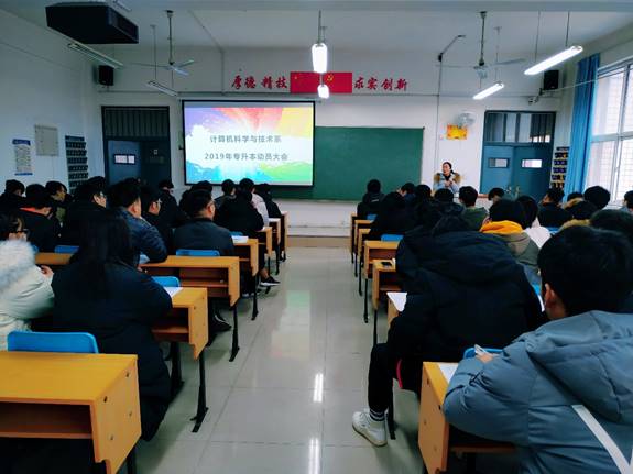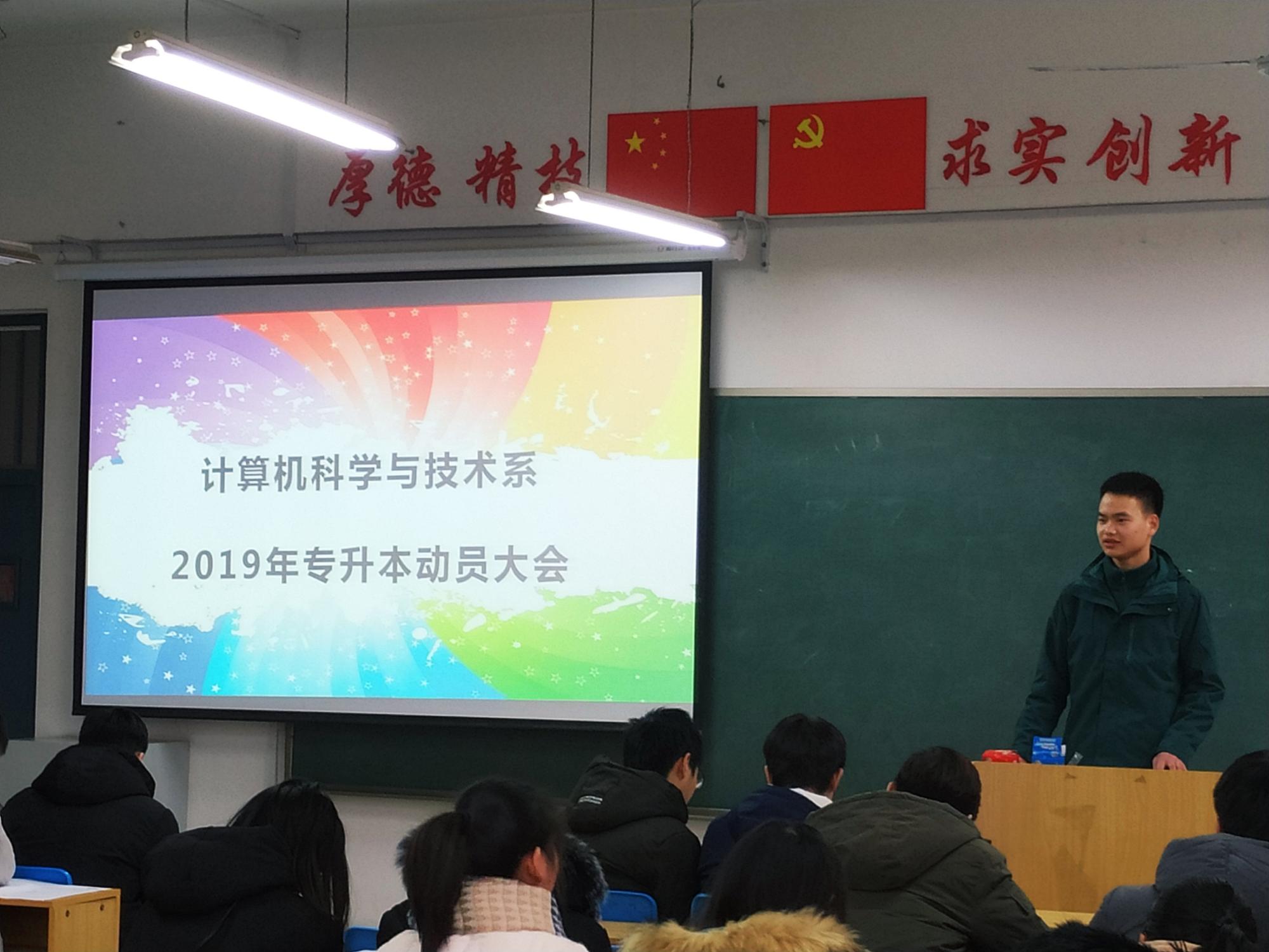 为提高我院毕业生对专升本考试的认识,引导学生提前准备,以积极的心态、科学的方法做好专升本考试的复习和备考,我院于2019年1月9日下午三点,在教学1号楼307召开了2019年专升本动员大会,2016级辅导员王佩老师及2016级部分专升本同学参加了本次会议。