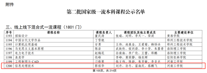 4月11日,教育部发布《关于第二批国家级一流本科课程认定结果的公示》,我院郭祖华教授、刘丹教授主讲的《信息处理技术》课程拟被认定为第二批国家级一流本科课程。