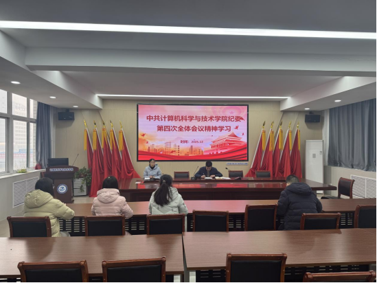为深入贯彻落实学校全面从严治党工作部署,进一步提升学院纪检干部的政治判断力、政治领悟力、政治执行力,2025年12月18日,计算机科学与技术学院在教三楼411会议室召开专题学习会,集中学习领会学校第四次全图会议的核心要义与实践要求。会议由学院党支部书记刘丹主持,学院党委书记常万军、全体纪委委员参加会议。