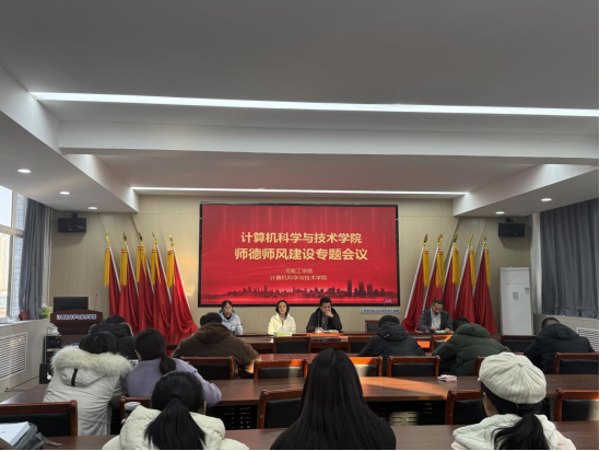 为深入贯彻落实新时代高校教师职业行为准则,扎实推进师德师风建设常态化、长效化,2025年12月25日,计算机科学与技术学院在教三楼411会议室召开师德师风建设专题会议。院长马绍惠、学院党委书记常万军出席会议并讲话,学院全体教师参加会议。会议由常万军书记主持。